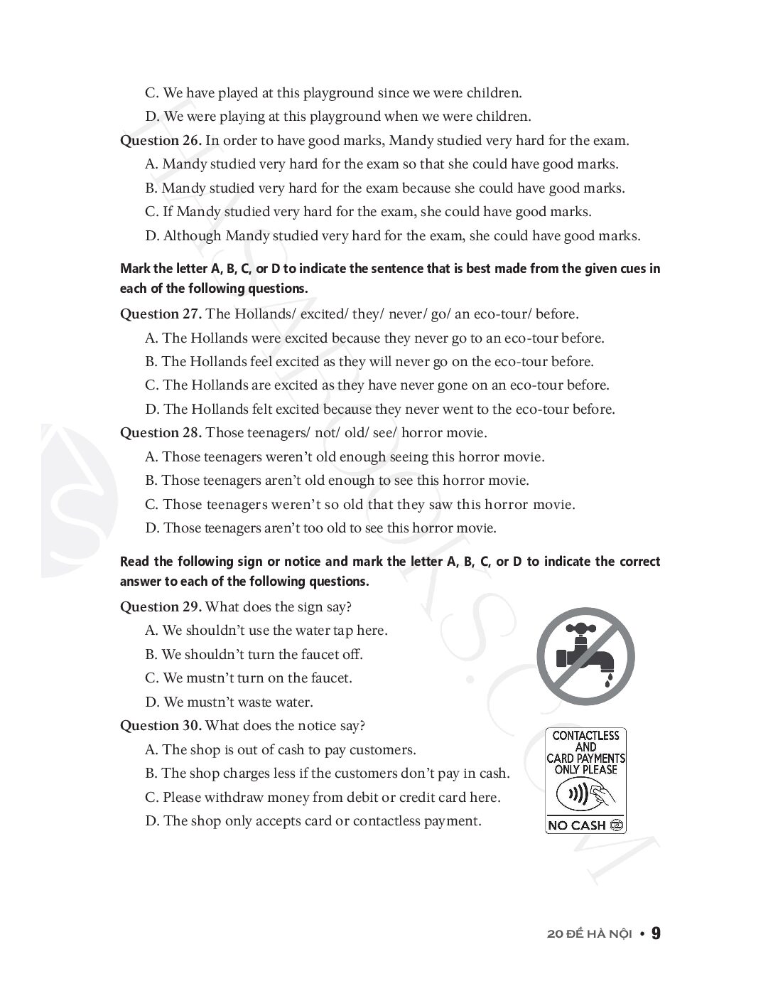 Các em thân mến, Đề Tiếng Anh mẫu là tài liệu cho các em luyện tập thêm và làm quen với cấu trúc đề thi, tổng ôn lại kiến thức đã học chứ không phải để học tủ và ôn thi tủ, nên các em luôn nỗ lực trong học tập để có kiến thức thật và gặt kết quả thực lực trong thi cử của mình, đặc biệt học tốt bây giờ là để có nhiều cơ hội cho sự phát triển bản thân và đóng góp xã hội tương lai.