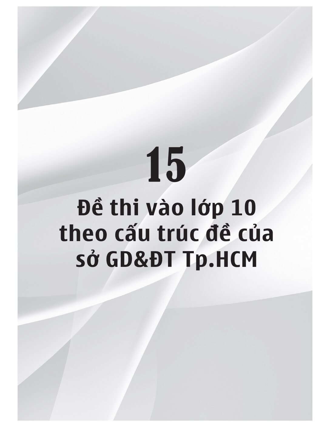 + 15 đề theo cấu trúc Đề thi tuyển sinh vào lớp 10 THPT của Sở Giáo dục và Đào tạo Tp. Hồ Chí Minh. Mỗi đề gồm 28 câu trắc nghiệm và 12 câu tự luận với thời gian làm bài 90 phút.
